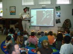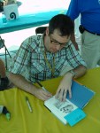 The last author of the day was Tony DiTerlizzi. He is the illustrator/collaborator of the Spiderwick Chronicles, but he was promoting his new book, Kenny and the Dragon. He was an amazing speaker. His humor and high energy really kept the crowd going and he showed off both his storytelling and artistic skills for the audience. He autographed my personal Spiderwick books, The Spider and the Fly, and Kenny and the Dragon.