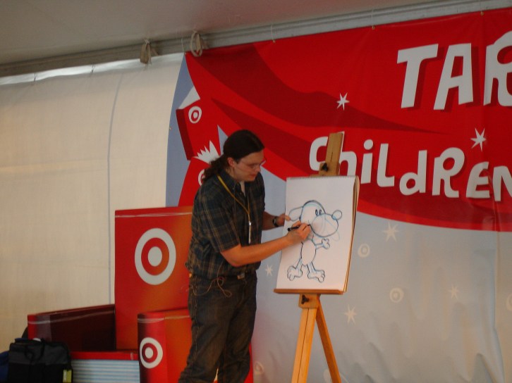 Published September 1, 2008 at 2048 × 1536 in Decatur Book Festival Day 2 Andy Runton Andy Runton demonstrates how he draws a sketch in blue and traces the actual illustration with black. ← Previous Next →