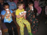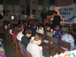 Well…another Barrow tradition carried on today as students, teachers, and families celebrated Polar Express Day. The whole school was nice and toasty in their PJs. Classes came two at a time to the media center. They were led by a conductor carrying a lantern. Each class heard a speech about using the ticket of imagination to get on board the Polar Express. Classes entered silently into a darkened media center as Polar Express music played over the speakers. Hot chocolate was served and students were ready for a story. We listened to a recording of the Polar Express as a teacher turned the pages of the book illuminated by a spotlight. After the story, every student received a bell along with the message to “Always Believe”. Each student received a candy cane on his/her way out. It was great to experience this tradition and celebration of reading. It was especially fun to see the PreK students’ first Polar Express day and the Fifth Grade students’ last day. It was a day filled with emotion, fun, and enjoyment of reading.