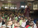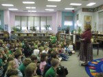 Deborah Wiles dances with PreK-1st Grades to the lullaby, One Wide Sky