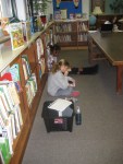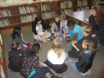 - A group of upper grade students was working with their teacher to find resources for a project in the media center while others in the group quietly read in the floor.