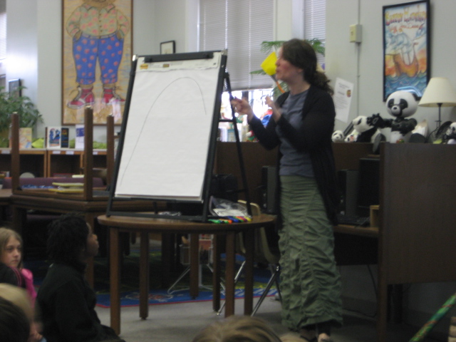 Students in 4th and 5th grade heard a story about Laurel’s life as a writer from the time she was in 4th grade until now. Along the way, they saw how Laurel’s writing has come full circle to the kinds of things she wrote about as a child and how her writing is developing into things that are more personal from her life. Students saw how Laurel’s first novel, Up and Down the Scratchy Mountains, took 8 years to write and had multiple rejections and revisions before it was finally taken into the publishing process. Finally, these students worked with Laurel to brainstorm the beginnings of a book and looked a the story arc of where the book needed to go by the end. Students were encouraged to continue working on this brainstorm and share the finished stories with Laurel and the media center.