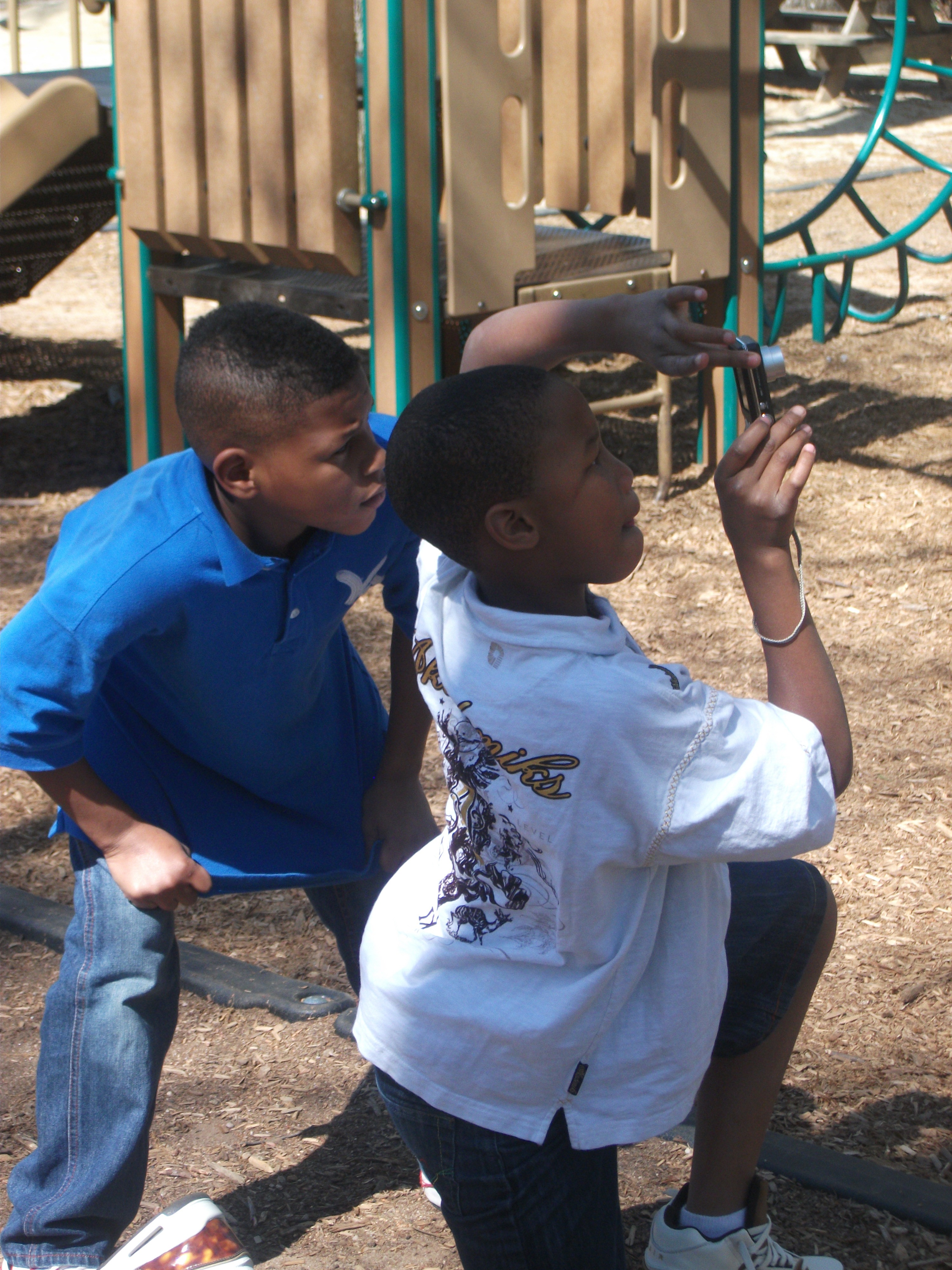 I collaborated with Ms. Olin, my former paraprofessional and now student teacher, to read multiple poems from Joyce Sidman’s books and talk about “noticings” from each of the poems. We looked at things like similes, repetition, rhythm, shape, form, word choice, and more. Students decided to write poems about nature since much of Sidman’s work is nature and science based. They took photographs of flowers, trees, and other nature around our school and also searched on Creative Commons for images. Students wrote poems at the media center tables and conferenced with me, Ms. Olin, Ms. Biehl, and their teacher, Mrs. Selleck. Finally, students used Photo Story to import their pictures, add text and music, and record their voices reading their poems.