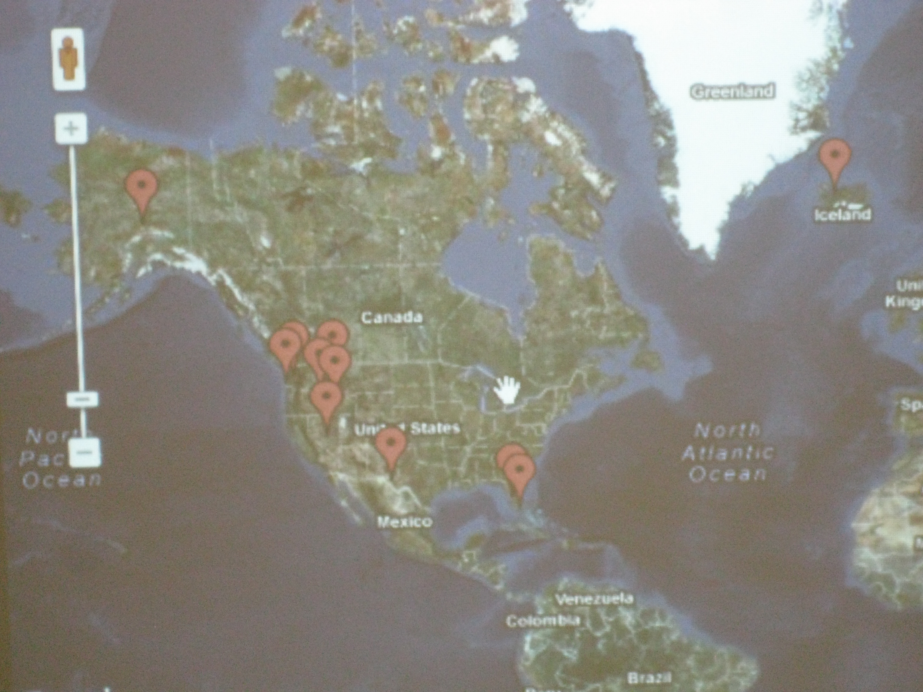 For the portion inspired by Tanya Hudson’s work, I created a Google form and asked 2 questions: What is the Native American group you discovered? and What is their location? I used 2 iPads as a station in the library where students could go and input thisinformation as they discovered locations in their research. I also embedded a map gadget in the form so that each time a student filled out the form, it pinned a location on a Google map. This map was displayed on the smart board. As the map started to populate, students began exploring what other students had posted onto the map, and an interesting thing happened. Students quickly discovered that students were entering incorrect information. The coolness of the iPad was causing some students to skip their research or type what they “thought they knew” into the form. The great thing was that other students started to call them out on this error. Other students discovered that you had to be specific on the location. Simply typing “southwest” did not necessarily put a pin in the right place of the map. Students began looking for specific states or, even better, specific cities. Our time simply wasn’t long enough, but a logical next step would be to have students begin to weed through the information in the form and decide what is valid and what is not. The data can be easily erased and disappears from the Google map. I already have one student who is interested in doing this by himself, but I think a whole class exploration would also be great because it lends itself to authentic conversation about why we do research in the first place.