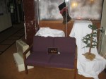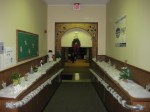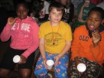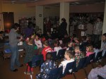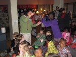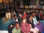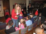 A sample of music from the Polar Express movie plays while students enter the library and take their seats. A spotlight illuminates the book that awaits them. The hot chocolate song comes on and students are served hot chocolate with marshmallows. After listening to the story, every child receives a bell placed around their neck with the words “always believe” whispered in their ears. Students immediately begin shaking their bells, which sounds like this: