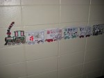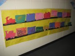 Every year our Polar Express Day is an event that students, teachers, and families look forward to. We of course wear our pajamas and listen to the story in the school library, but it’s much more than that. We want students to experience the story. A conductor with a flickering lantern meets classes and leads them to the train tracks of the Polar Express. The path is lined with multiple decorations: lights, student-made art, train tracks, a ticket booth, railroad signs, and more.