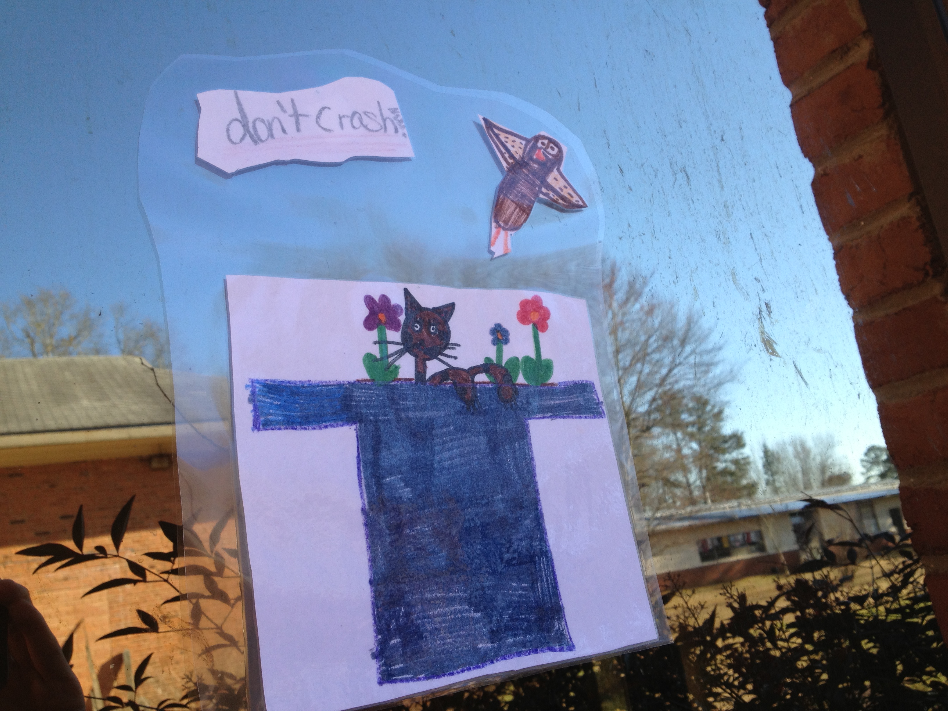 • Some students had put laminated colorful pictures of flowers on the outside of the window and birds were flying straight into those pictures.
