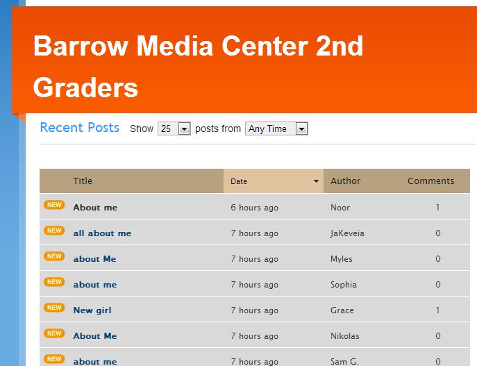 Their blogs are located at Barrow Media Center 2nd Grade KidBlog.  We invite you to read and comment on their posts.