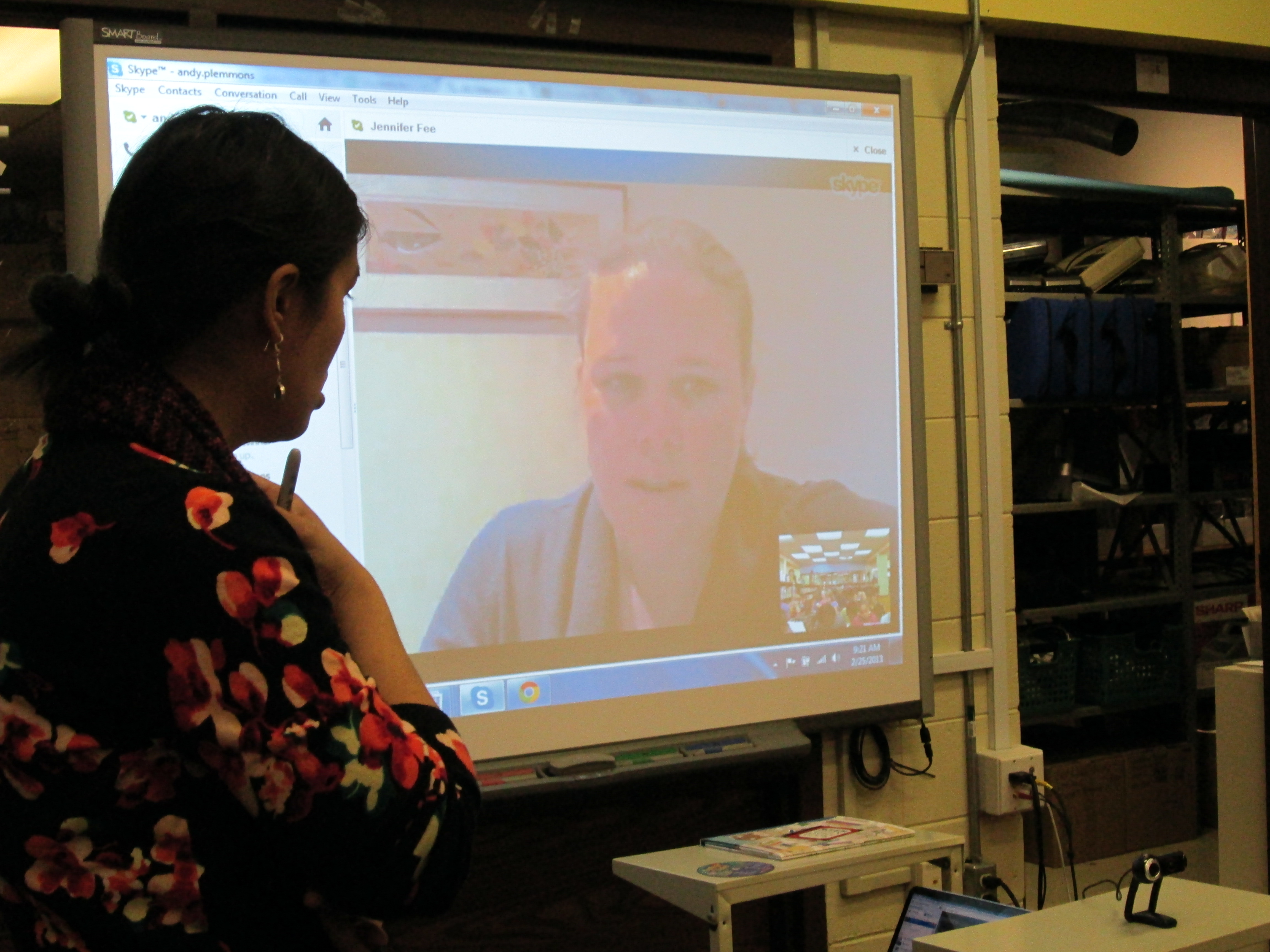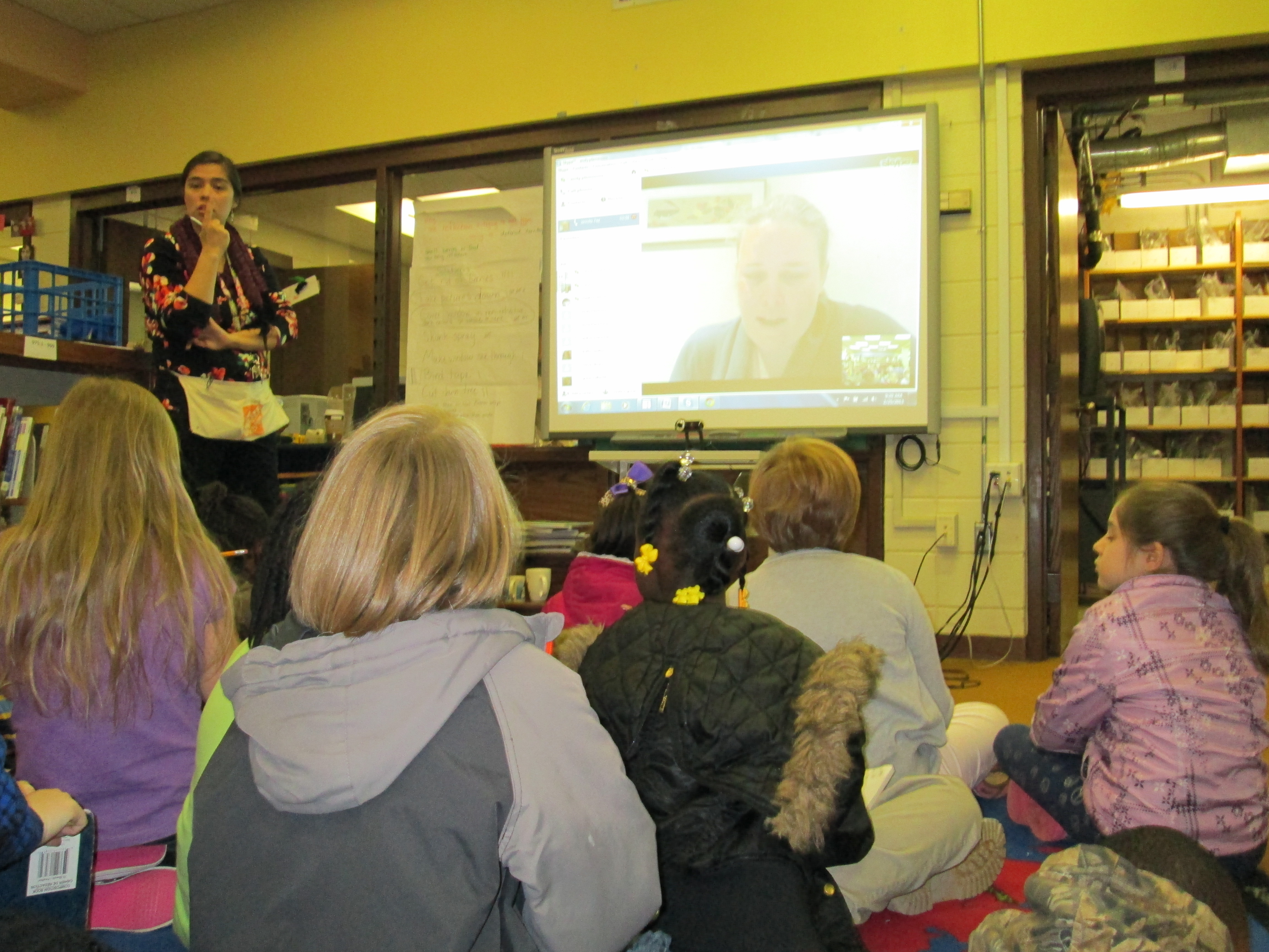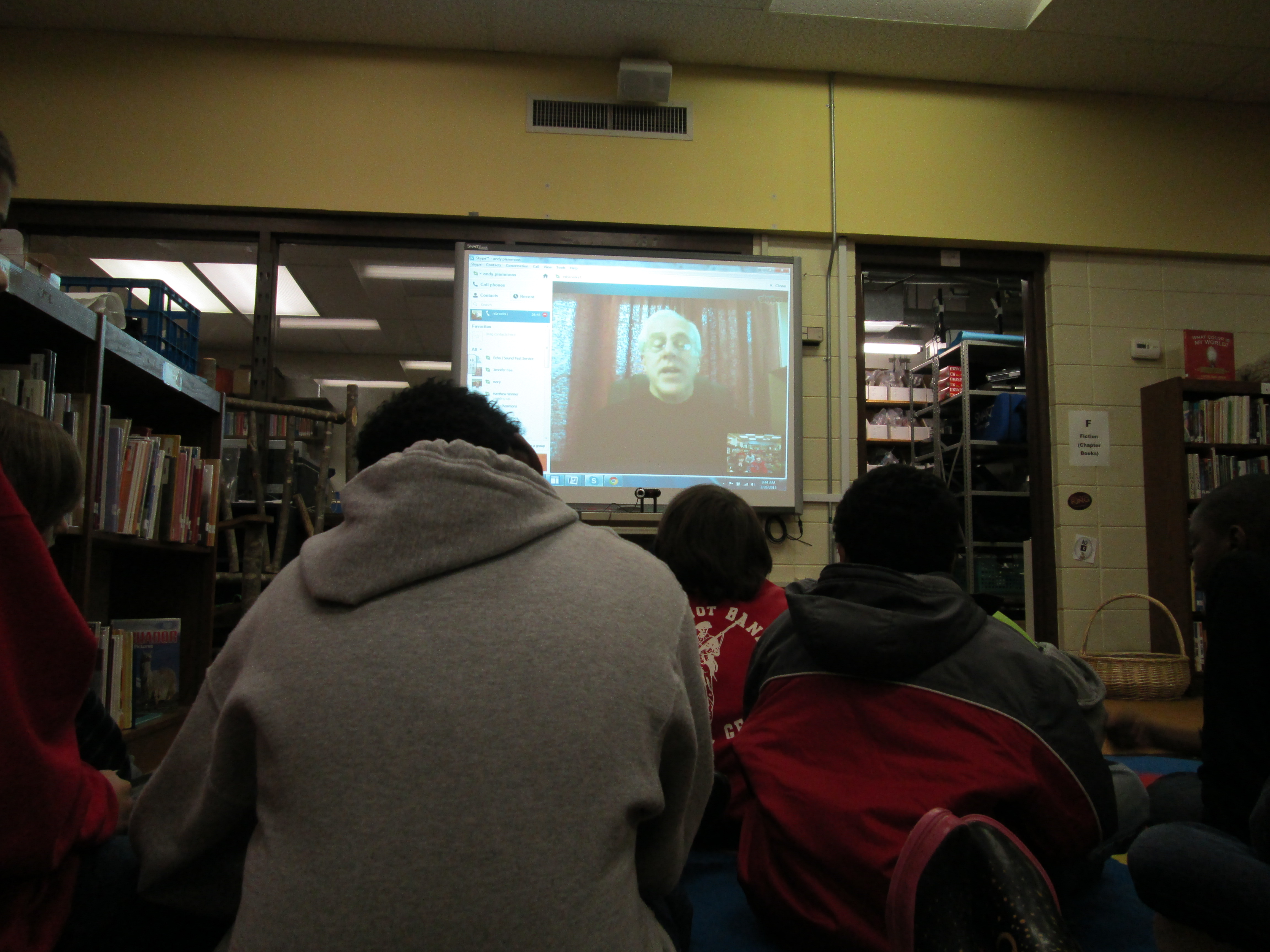 On Tuesday and Thursday, Rick skyped with researchers, writers, and task managers from Ms. Cross and Ms. Slongo’s Class.  He told them a bit about the mission and vision of Little Free Libraries, shared specific parts of the website students might visit, and suggested some videos for them to watch.  The kids were able to ask Rick questions about things like green building techniques, location of little free libraries, and which libraries seemed to be more popular than others.  We even had a student have a conversation with Rick in Spanish.IMG_0084