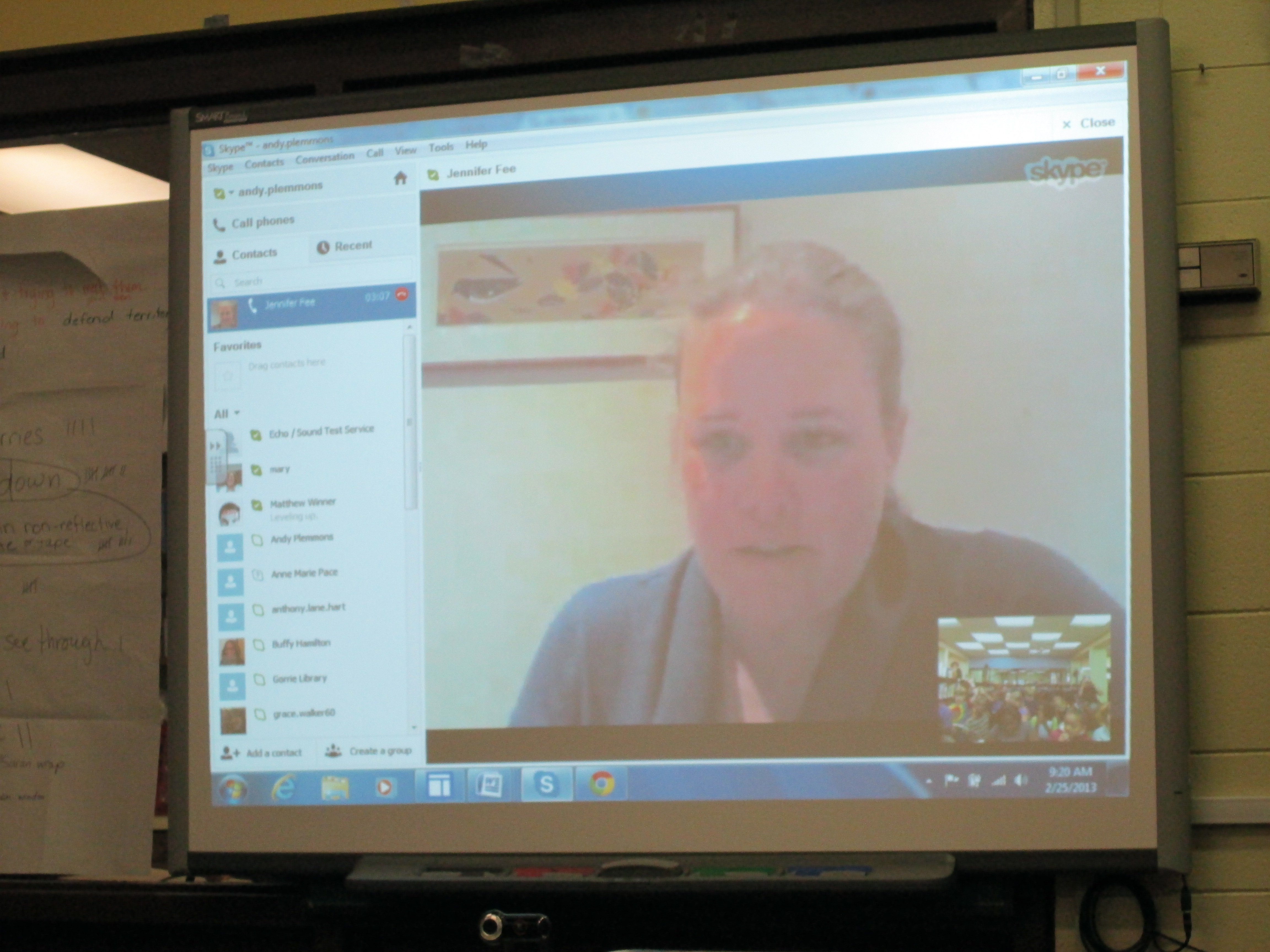 IMG_0053This is such an exciting project.  It is full of higher order thinking, student ownership, multiple standards, and authenticity.  I was sure to be transparent with students about how we connected with so many fantastic people.  The power of social media and technology “for good” is incredible.