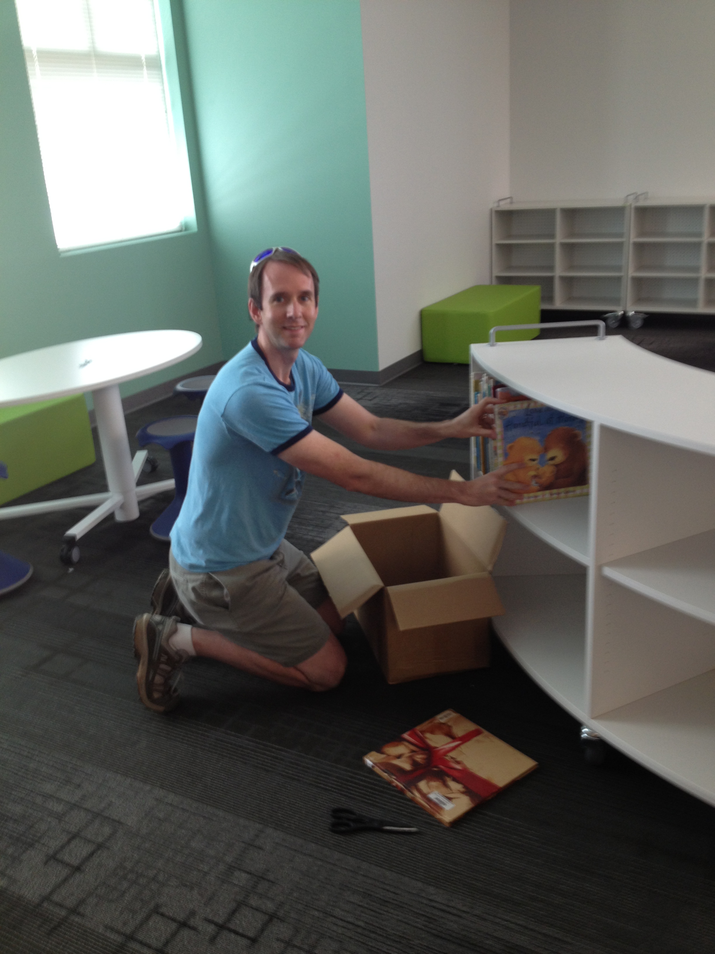 In the midst of all of this, a whiteboard was installed. Three different workers came to ask me where various computer equipment should be installed. We realized that one projector was not wired into the network. I questioned the height of the circulation island for our younger students. Multiple teachers came to ask questions about technology, upcoming projects, and their own shelving in their rooms. I submitted a purchase order, and who knows what else I did and don’t remember. This is exhausting, but each time someone walks in they already talk about how inviting it is. With each unpacked box and piece of furniture, we move one step closer to a new school year. It’s truly exciting.