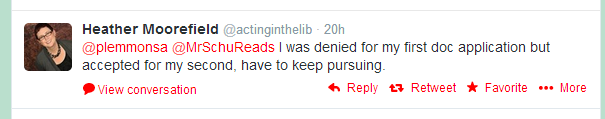 I applied to the UGA specialist program. The letter came in the mail, and I was……..DENIED! It seems that a subset of my GRE scores were not quite high enough even though my portfolio of work and accomplishments showed much more than a number on a test. Sound familiar? But alas, the test score ruled and I wasn’t in the program. I was devastated and thought I would never be in the library. After a few days of pity party, I got mad and decided to do something about it. After exploring with UGA, I discovered that I could still get in the program in the same semester if I took the GRE again. I registered for the test and then spent hours studying vocabulary, taking practice tests, and learning strategies. I’m a terrible test taker, but I thought that surely I could boost my score by a few points. I took the test, got the points, and applied to the program again. This time the letter came in the mail, and…..I was in!
