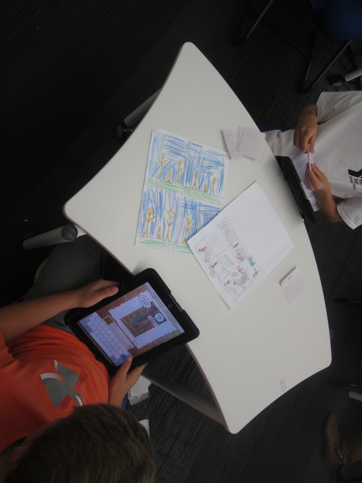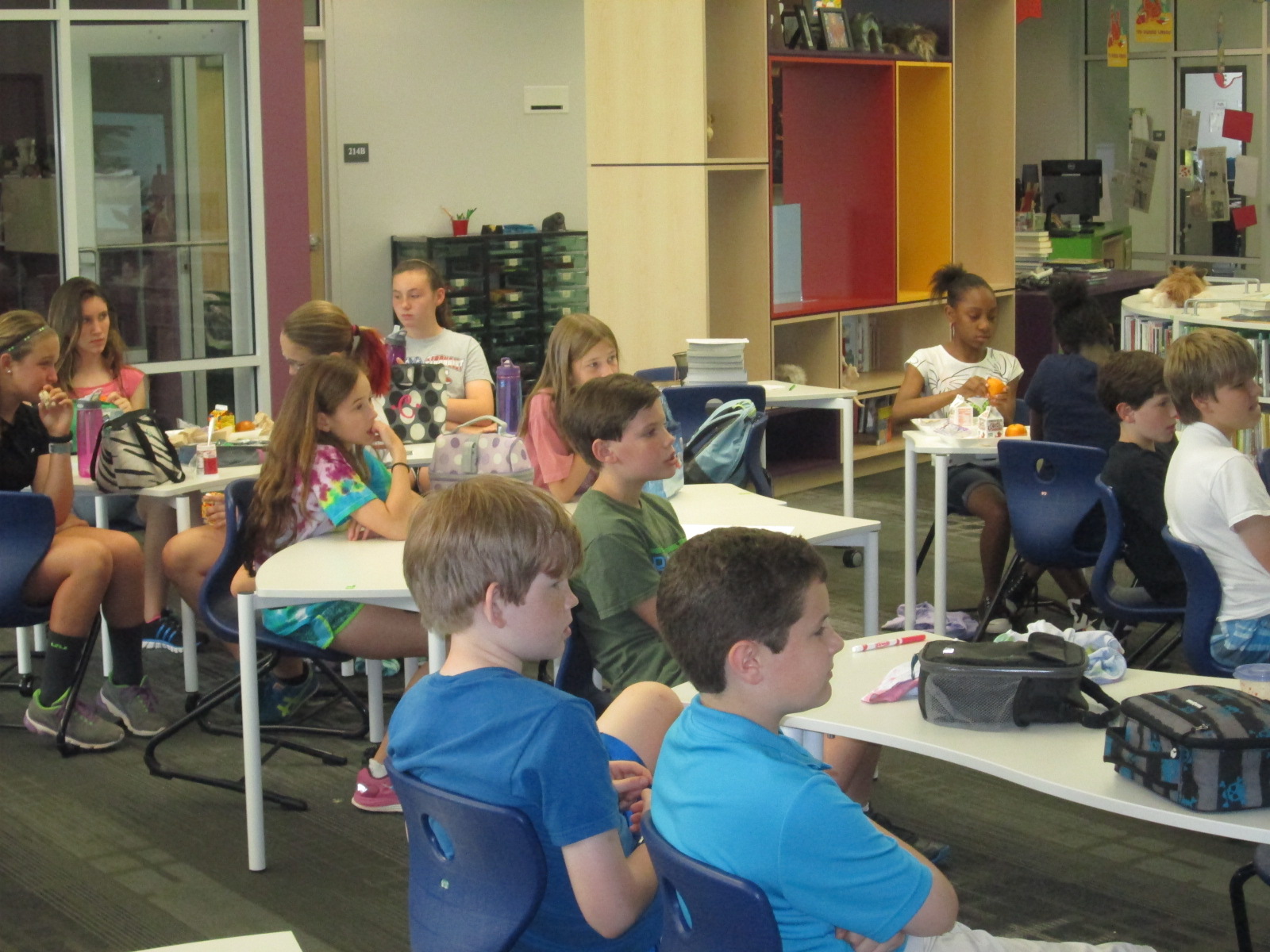 While students were working, we had quite an extensive team of helpers during the day. For the most part, students were independent. We scheduled helpers to assist students with typing, following directions, and thinking of feedback to go to the camera and give to Lindsey at Evanced.