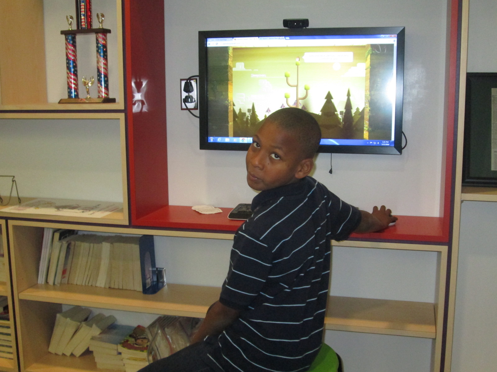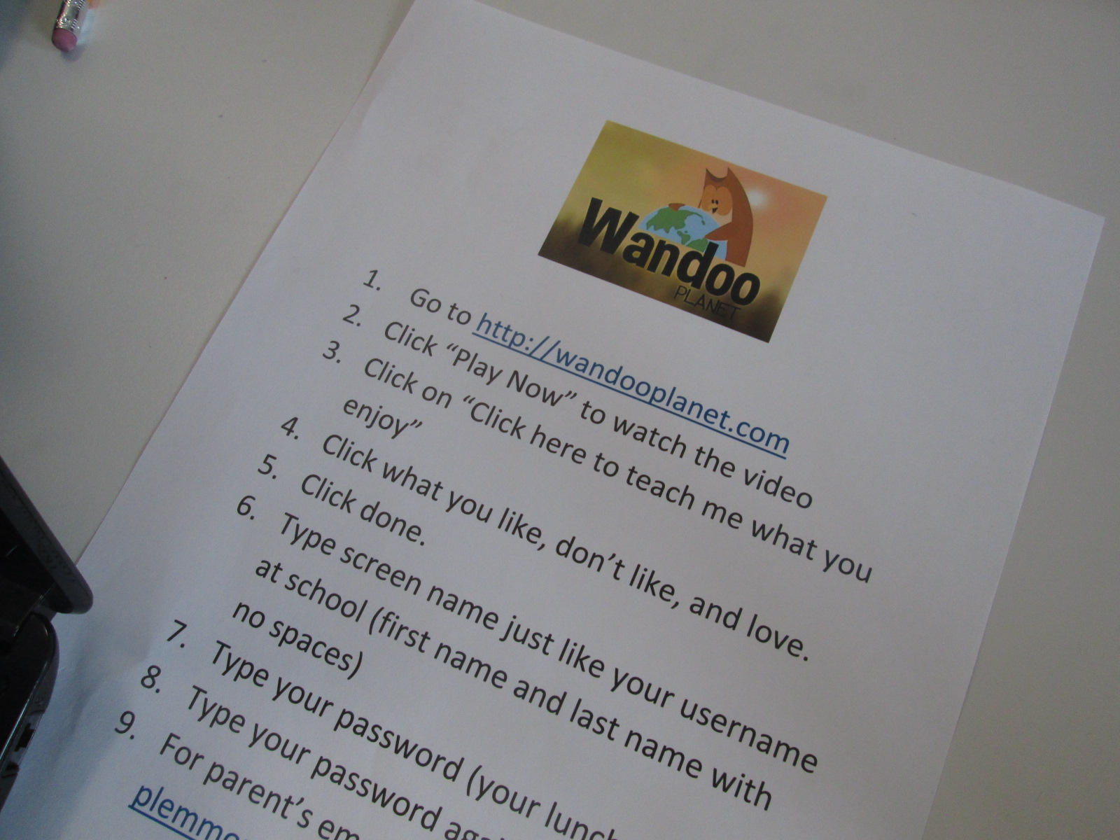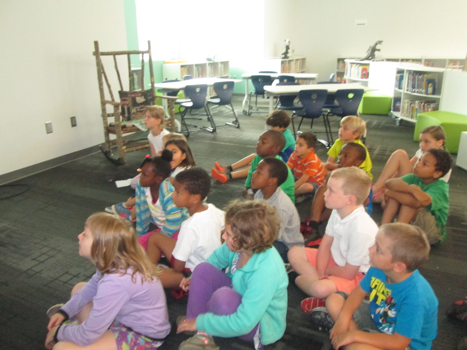The goal for students during the work session portion of the 45-minute segments was to view the “squirrel parade” on Wandoo planet and begin teaching Wandoo what they like, dislike, and love. After about 5-10 minutes, they setup an account and begin building their Wandoo tree. The tree gives students recommendations for books. If they mark a book to keep, it puts a bud on their virtual tree. After they read and rate the book, the bud turns into leaves on the tree. Students can also add interest branches to their tree by revisiting the squirrel parade or typing a topic directly onto a branch. Students had a small amount of time to do this today. I put a sheet on every table to remind students about all of the steps.