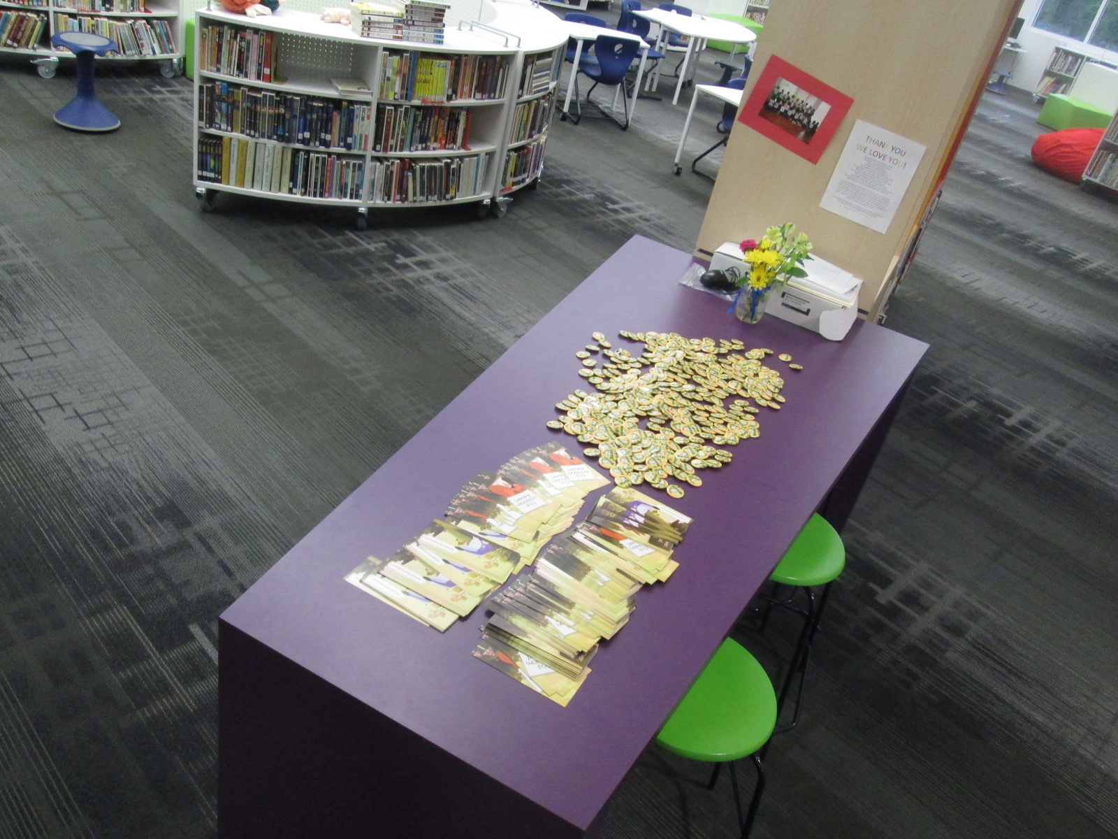 Lindsey Hill at Evanced began brainstorming with me on Twitter and email to plan a virtual visit right before we leave for the summer. She mailed me bookmarks, username/password cards, and buttons to give to all of the students.