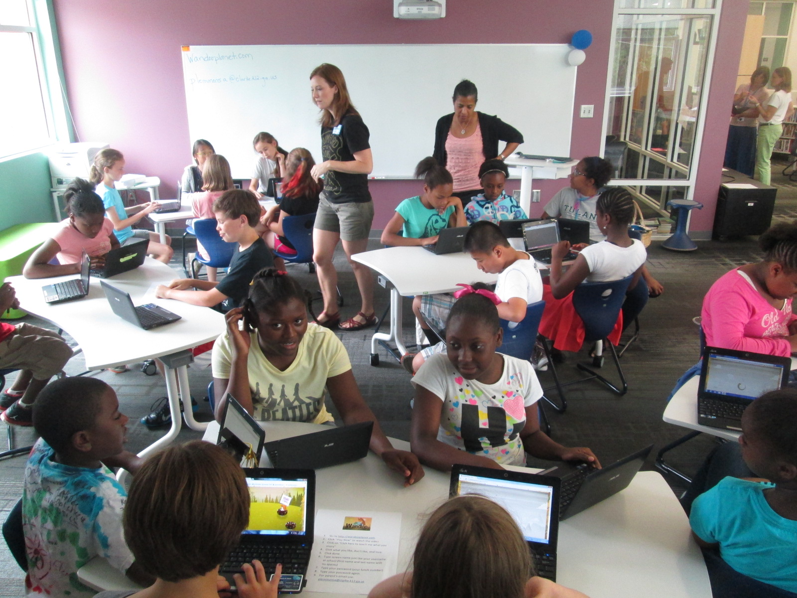Students brought their classroom computers with them, but for 2nd grade we had to use the library laptop cart and other library computers. It was interesting to look around and see all of the ways that students were accessing Wandoo.
