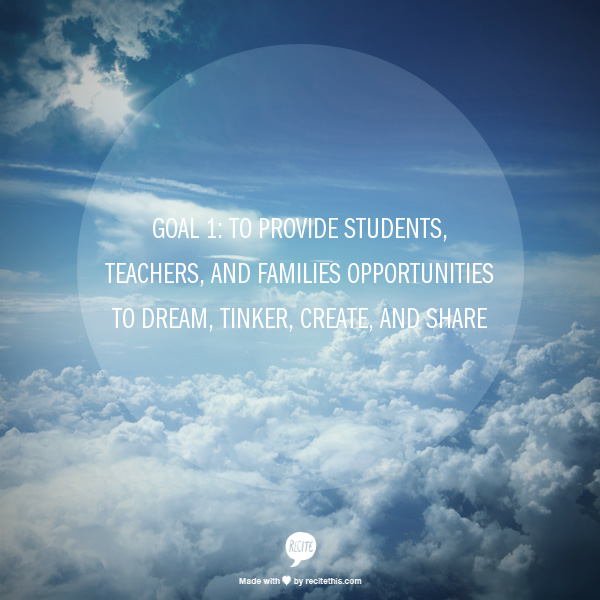 1. To provide students, teachers, and families opportunities to dream, tinker, create, and share