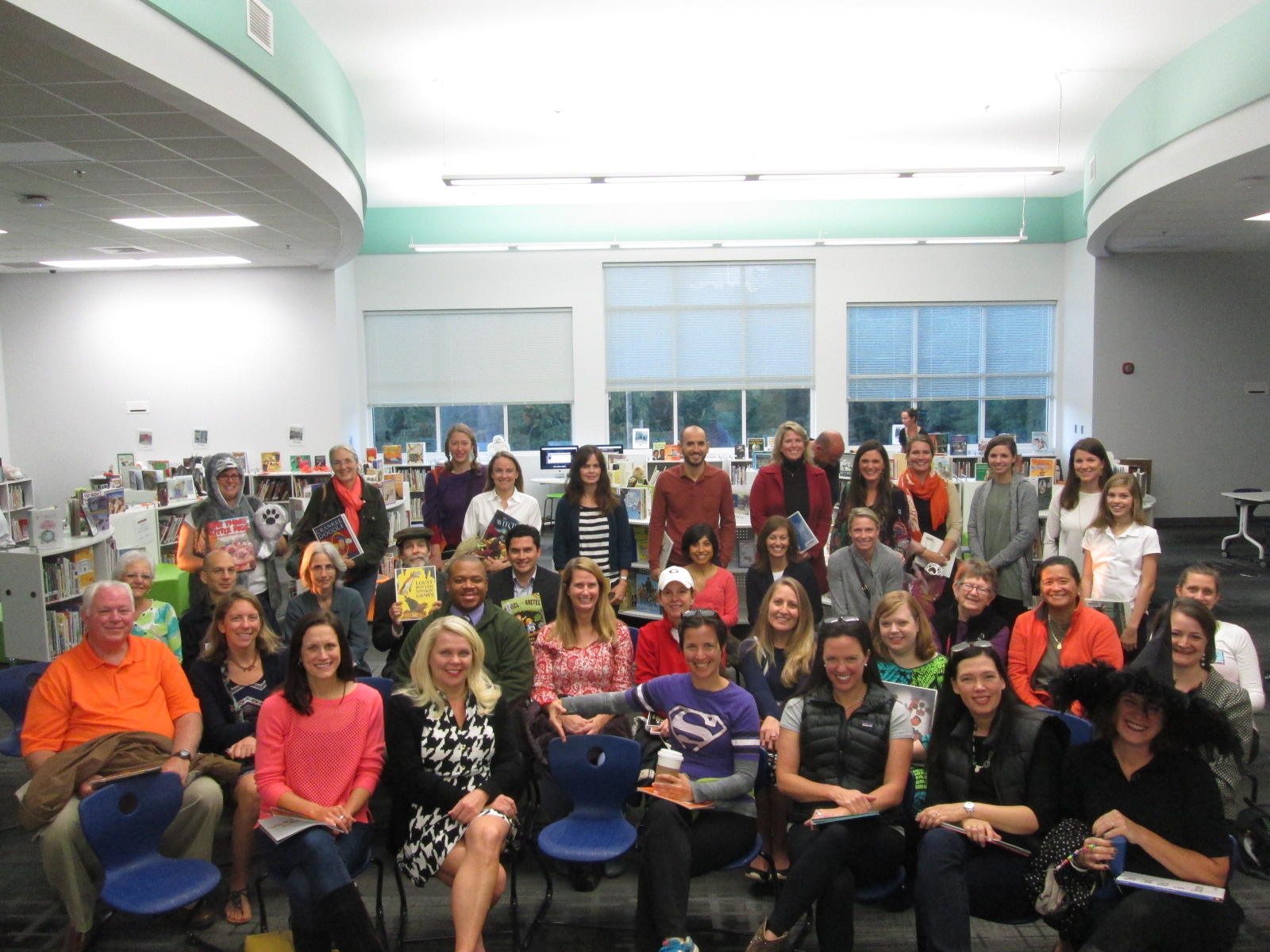 While readers wait to go to classes, they mingle, pre-read their books, and find a place to sit in the chairs that are ready for a group photo.