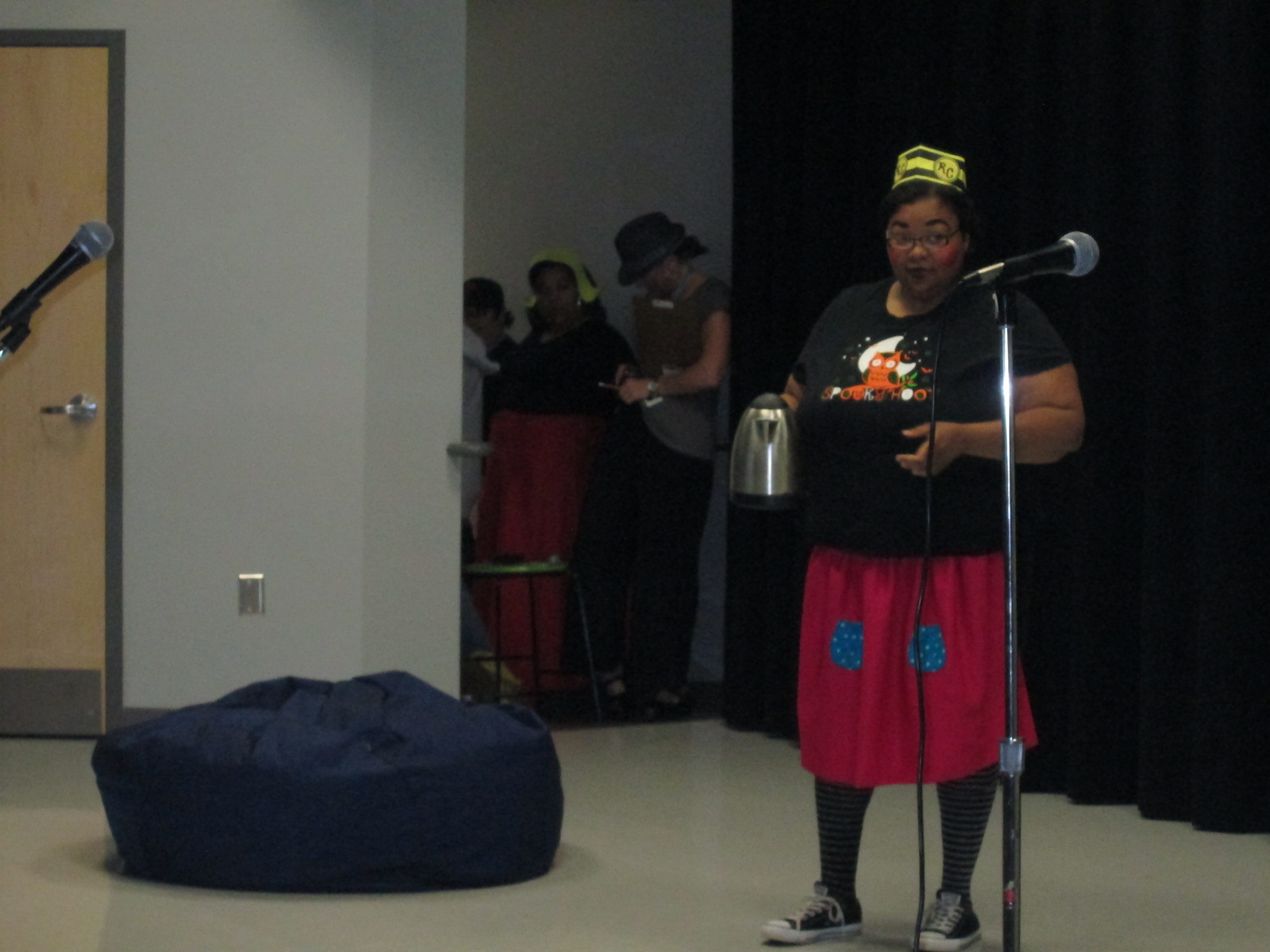 In the past, all students have walked across the stage to show off their costume. This has been very time consuming, so this year we tried something new. Each row of students stood, twirled, and sat down facing the back of the cafeteria. We did this until every student was facing the back.