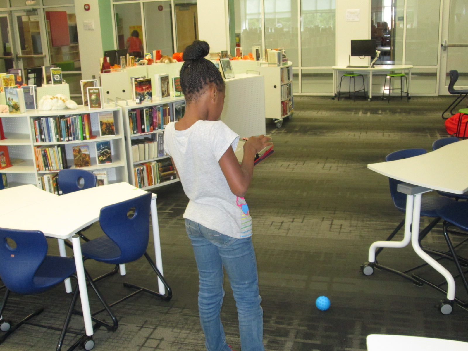 Once all readers make it to their rooms, I race around the school to take pictures of as many readers as I can. There are about 2 readers for every classroom. They read and talk with the kids about their book. Some even leave the book in the room so that kids can keep enjoying it during the day, but most bring the book back to the library.