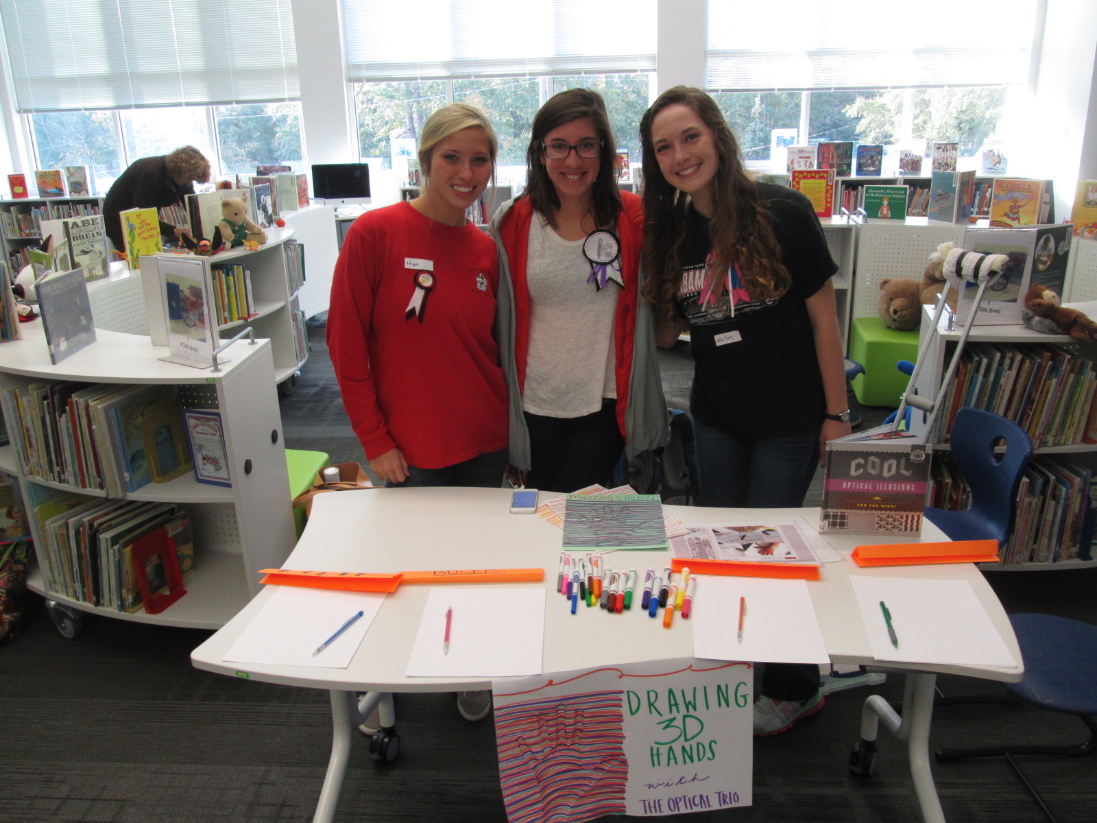 One center explored optical illusions.  These students displayed a book of optical illusions and helped students create a drawing of their hand that looked like it was lifting off the page.