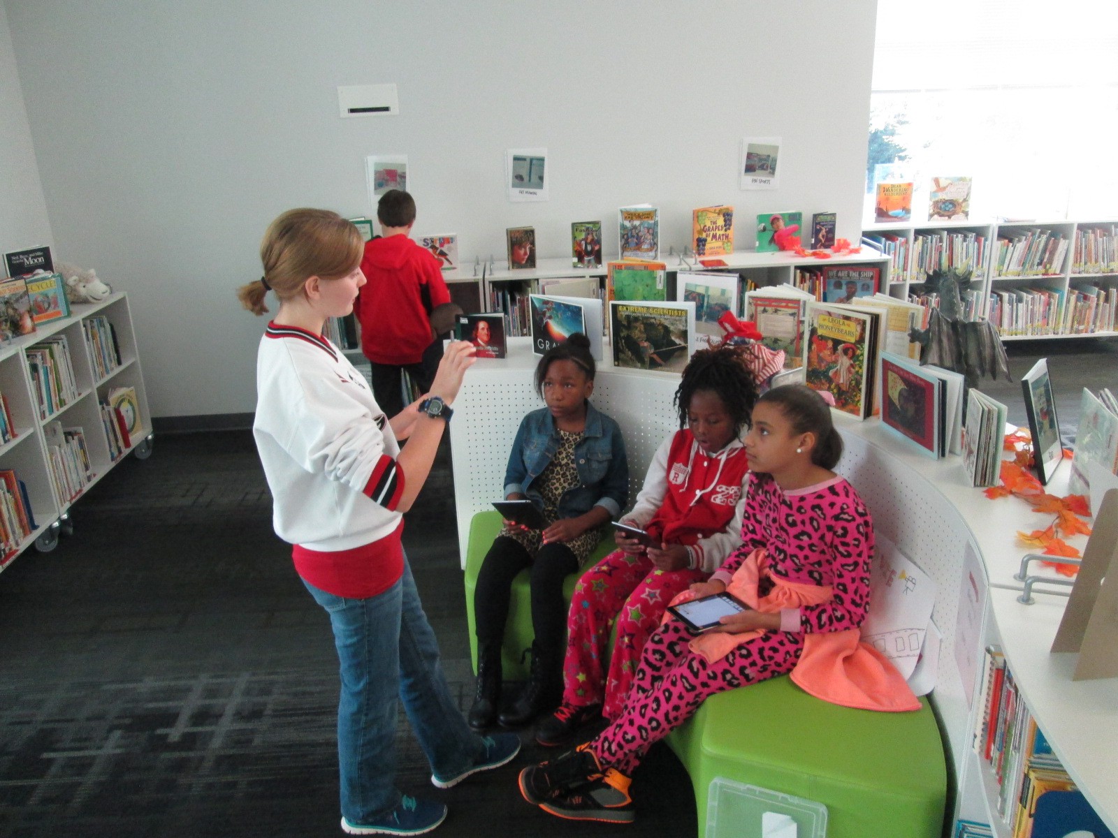 Students loved the paper airplane center.  These UGA students had books about paper airplanes and materials for making planes.  Students spent time making their planes and then testing them out in the library.  I loved watching planes flying around the library and hearing teachers ask “are students supposed to be flying airplanes around?”.