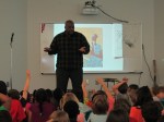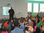 Sarah’s two new books are Glamourpuss and Honey.  She treated the students to a full reading of Glamourpuss and the high-energy students were mesmerized.  I loved how she showed Honey to the students.  She showed several slides with single words that helped students know some things the books was about, but then she showed students several characters from the book along with text from the book that gave the students a taste of the character.