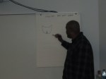 These students loved it when Mr. Christie drew the face of Jazz Baby but then let students come up and collaborate on the drawing to help tell a story.  They only had  few seconds to add to the drawing.  He started asking them to be accountable for their work by telling what they were trying to achieve by drawing what they did.  After several students, he came in and added his own twist to the drawing.