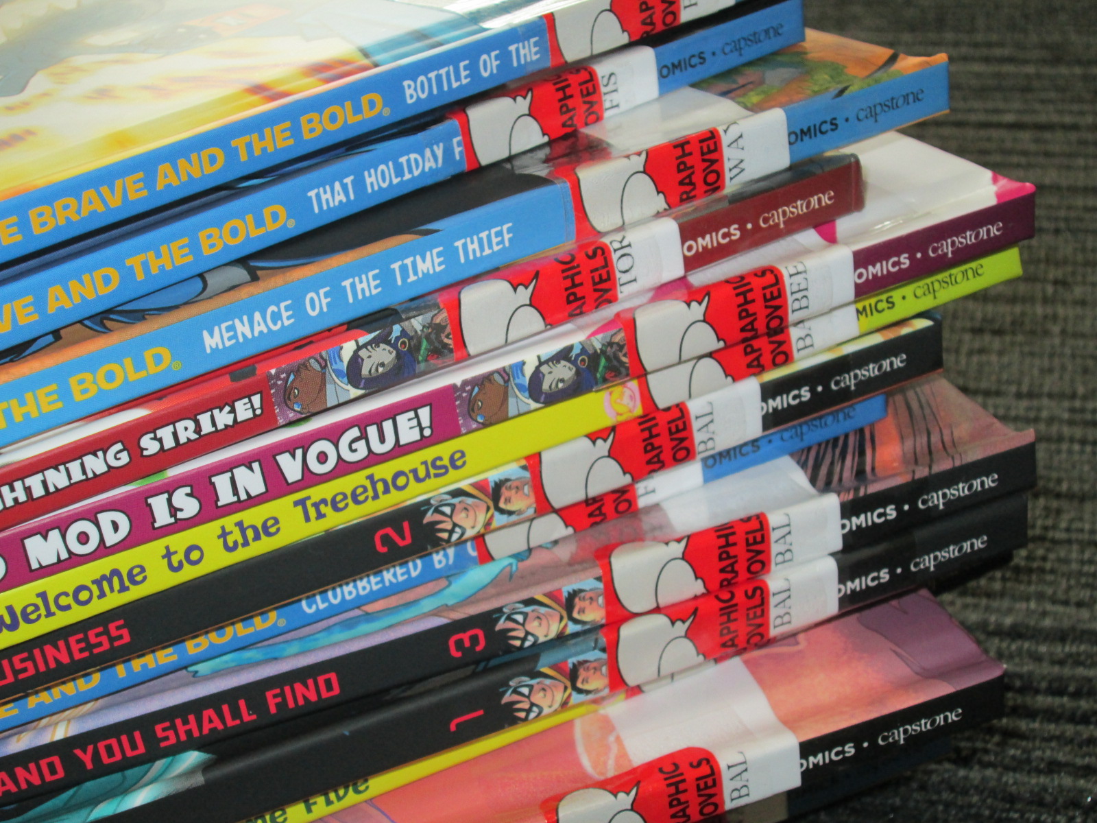 We realized that several of the books were cataloged as fiction but were really graphic novels, so we took time to label all of those books with a graphic novel sticker so that they could be easily found with other graphic novels.