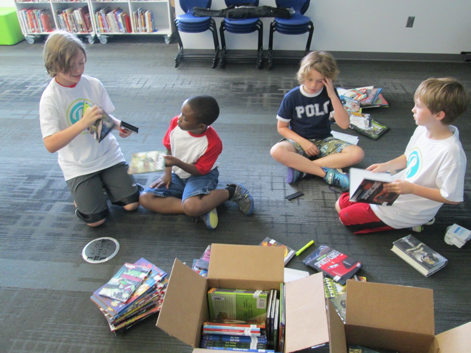 This year, we got started a bit late, so we didn’t get all of our books until the very last week of school.  After a lot of debate, the students decided to prepare the books for checkout, enjoy looking at them, and then set them aside for the beginning of the school year next year.  It was a hard decision, but we think it will be so exciting to walk into the library on the first week of school with over 150 new books to choose from.