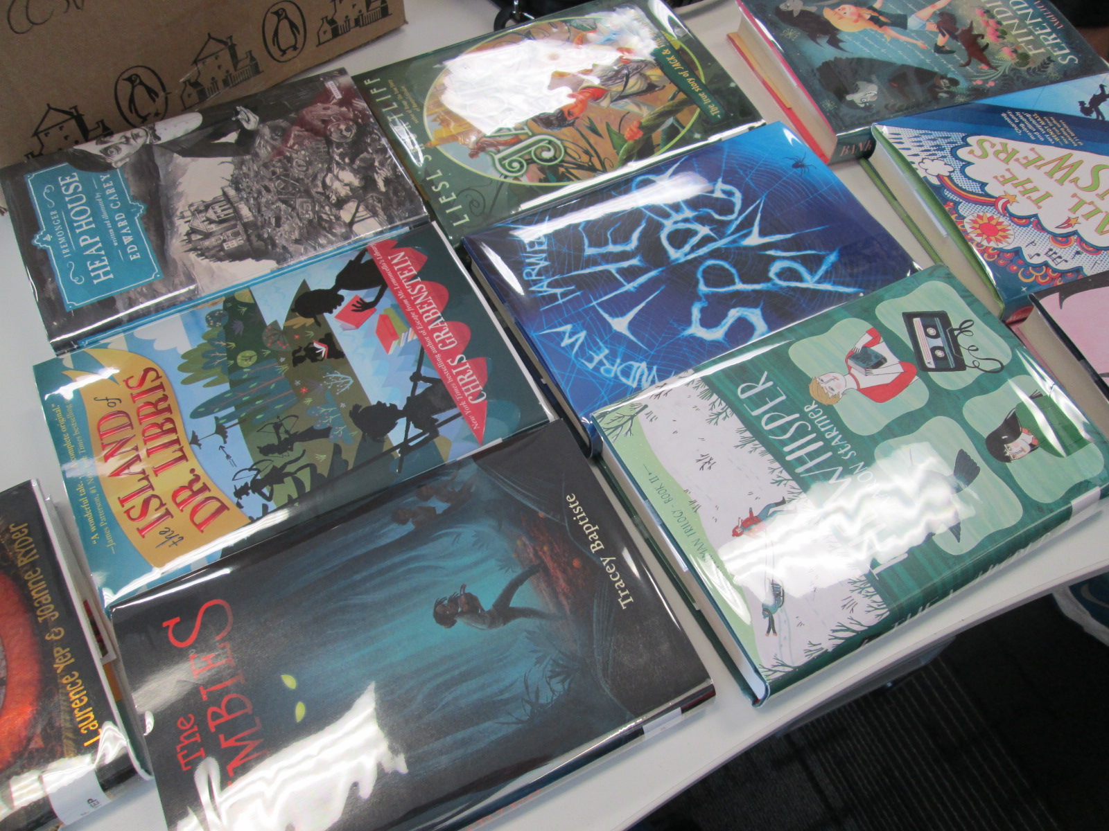 Our timeline has been a bit crunched this year.  We are almost out of school days and book check out is already coming to an end for the school year.  I need to do a better job next year of making sure this project doesn’t slip too far into the year.  Usually, we put all of the books out when they arrive and let the students start checking them out.  However, with only 8 days of school remaining, I handed this dilemma to the group.  There was a lot of debate about whether or not to have a special checkout of just book budget books or to wait until the opening of the library in the fall.  After a lot of discussion, the students decided that they wanted to wait and have these books be the first new books available to students in the fall.  It’s always nice to start the new school year with some exciting new books.
