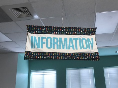 I reached out on social media to see if anyone had any connections with someone who would be willing to work on custom signs for our library using Christian Robinson’s fabric. Several people gave helpful information to think about in designing the signs, but then I got a wonderful email from Barrow parent, Amy Norris, offering to help.