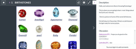 Early in the project, students come to the library to learn about a tool called Blendspace. This tool has gone through many changes and names. It allows users to create a lesson made up of tiles. The tiles can include quizes, images with descriptions, links to websites, embedded Google docs, and more. The goal for the students is to use Blendspace throughout the study of rocks to capture their learning and present in a way that might teach someone new what they have learned.