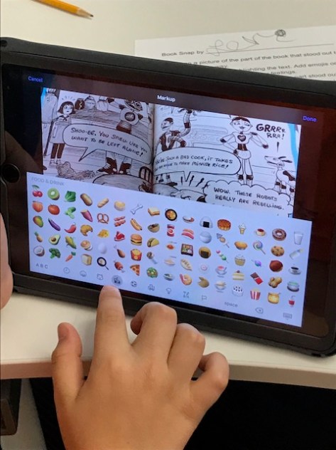 Students used Airdrop to send the pictures to my phone. Then, they wrote their caption on a piece of paper, which also had the instructions for creating their image. Students sat with me and dictated their caption while I typed it on my phone. I had them proofread what I typed and press the share button.  We added #booksnaps and #studentvoice to each post.