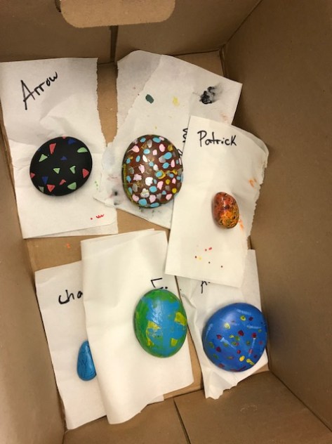 We sealed these with Mod Podge to give them the shiny play of color effect that opal has. Students added their Google docs to Blendspace and will get to take their painted rocks home.