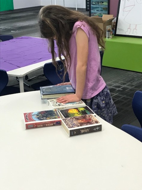 This quarter I’m working with 2 different groups of 3rd and 5th graders to explore our reading lives. Some of the students I’m working with have not found a book they connect with enough to finish. Others need a nudge to try something maybe a little more challenging or stretch the breadth of their genre choices.