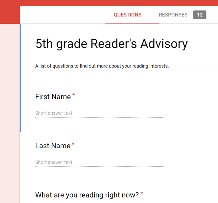Published January 12, 2019 at 898 × 837 in Matching Readers to Books: A Reader’s Advisory Exploration 2018-19 5th grade reader’s advisory – google forms ← Previous