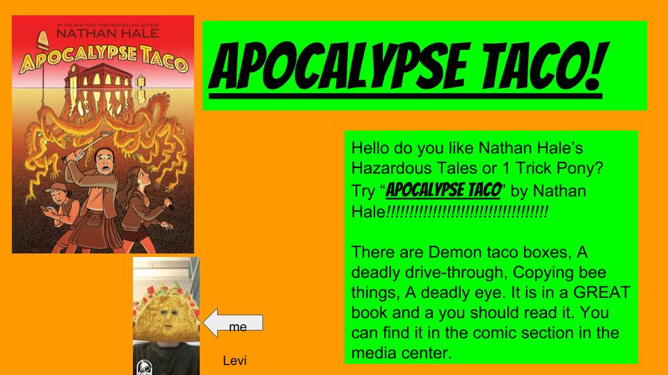 Published April 5, 2019 at 960 × 540 in Sharing Books Through Google Slides, Shelf Talkers, and Book Talks book sharing (6) ← Previous Next →
