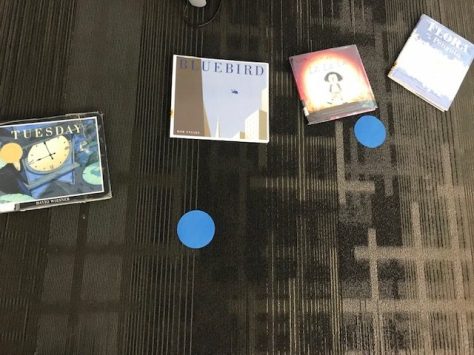 Ahead of his visit, I shared his book on our morning broadcast and sent home pre-order forms. We also held a design-a-dinosaur contest for all grades. Students could design any type of dinosaur (real or made up). Little did I know how well this would connect with the actual content of Mike’s visit. My student support technician, Ms. Allie, and I sorted through the entries and had a very hard time narrowing down to 10 final winners. Students were so creative and funny. Each of these winners received a copy of Mike’s book. All entries were displayed in the windows of our library along with a dino welcome sign.