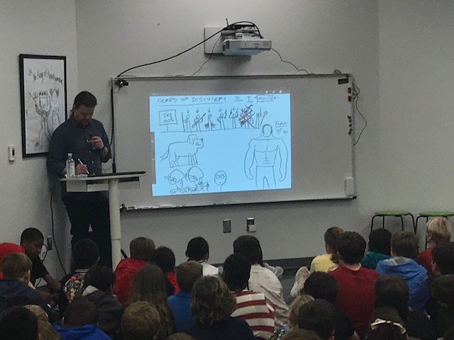 Published January 16, 2020 at 640 × 480 in Major Impossible: An Author Visit with Nathan Hale Nathan Hale Visit (59) ← Previous Next →