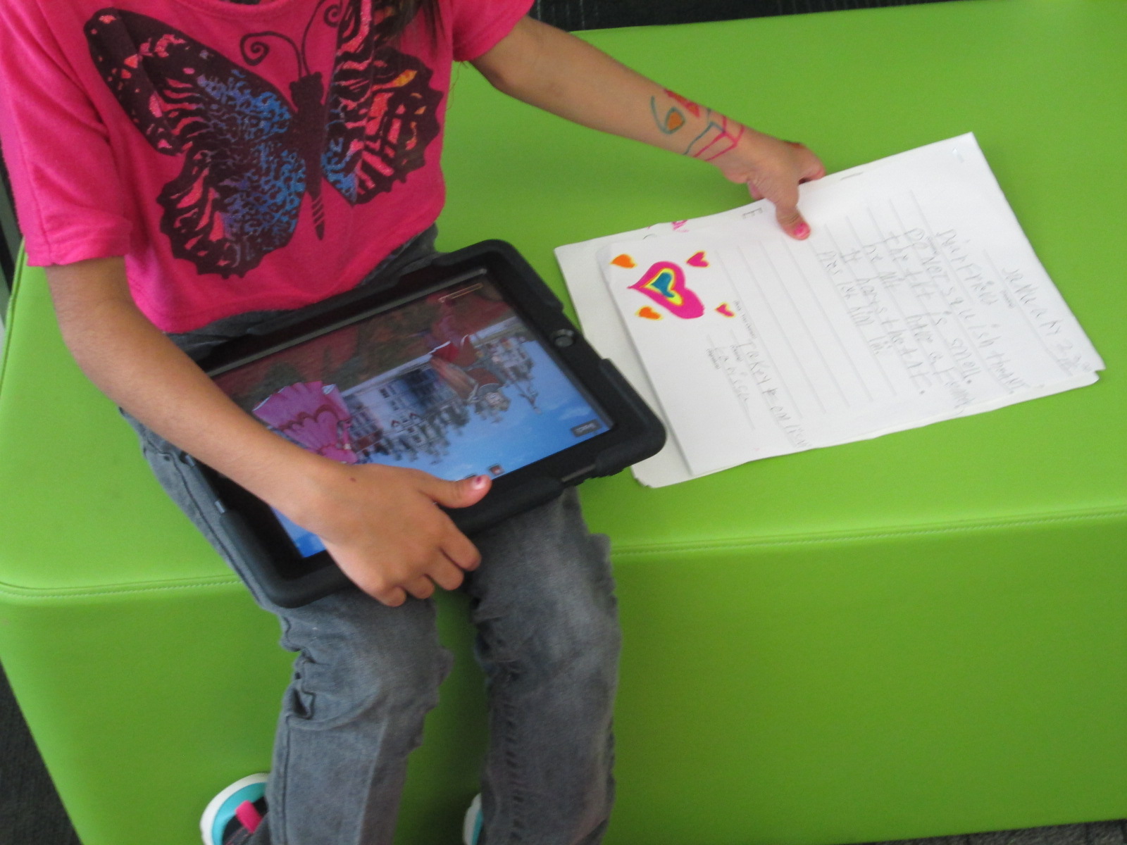 We sent them to tables with iPads and then rotated around to support students with any design questions or confusions they had. Once students were actually in Blocker, most of them had little to no trouble figuring out how to design. When students felt their design was done, they raised a hand for us to come and double check it. Then, they named the file with their name and moved on to tinkering with any part of the app.