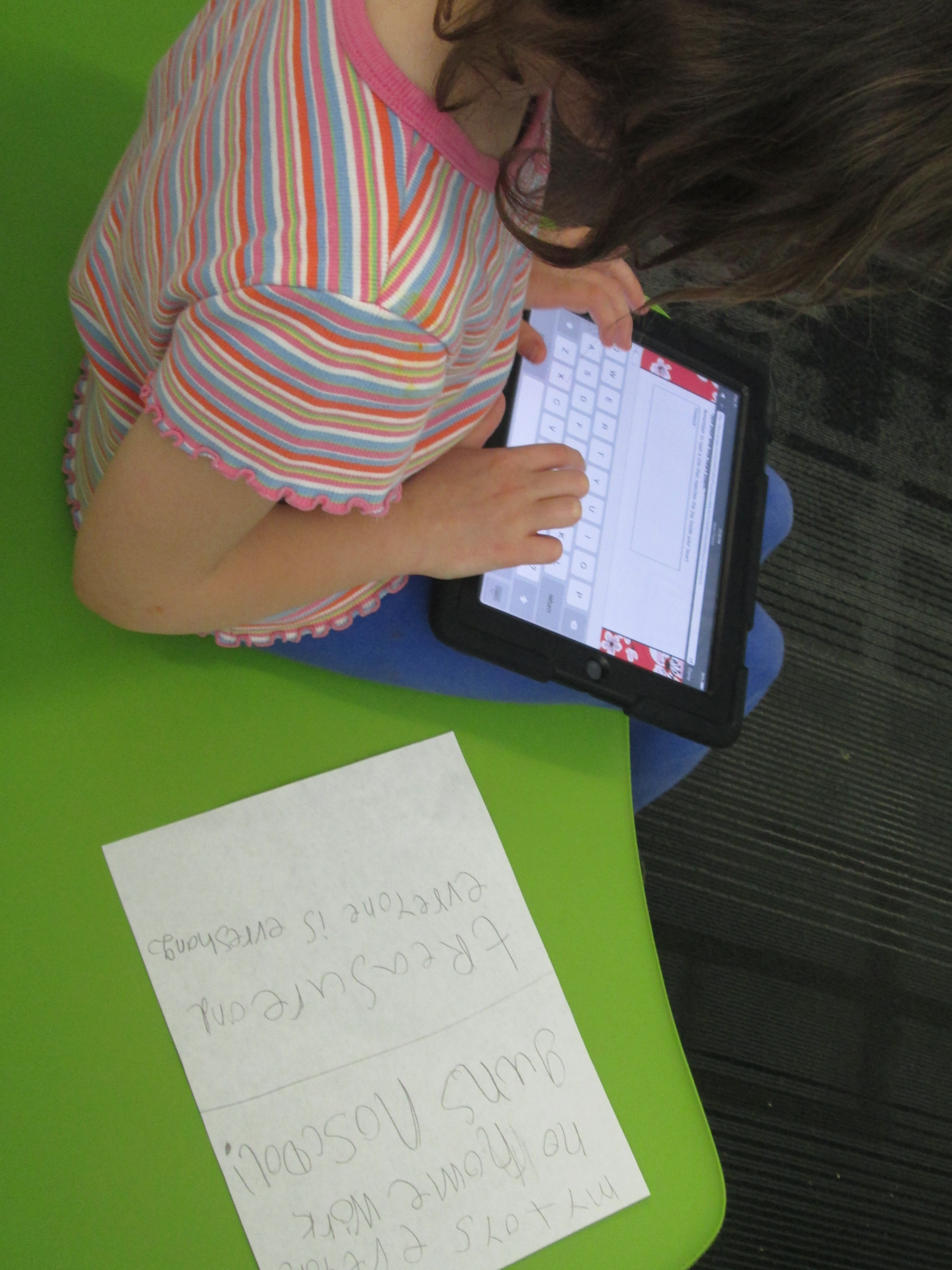 So far, I feel like our 3d printing has been very teacher directed. Because of safety concerns, I’m afraid to let elementary students use the 3D printer alone. Now, though, I have some students who are really capable of this. They know how to design something in tinkercad, export to Makerware, slice for 3d printing, save on an SD card, load the SD card, and get the print started. I was startled one day when I heard the 3d printer start, and when I raced over to see what was going on a student had gone through this whole process alone. I did remind him that due to safety I really wanted to be around when something was 3d printing, but I was also proud that an elementary student was able to go through all of the steps to print something. Now, he has passed on that expertise to several other students. Their designs are very simple at the moment, but I think they will get more complex as they tinker with the tool more and more.