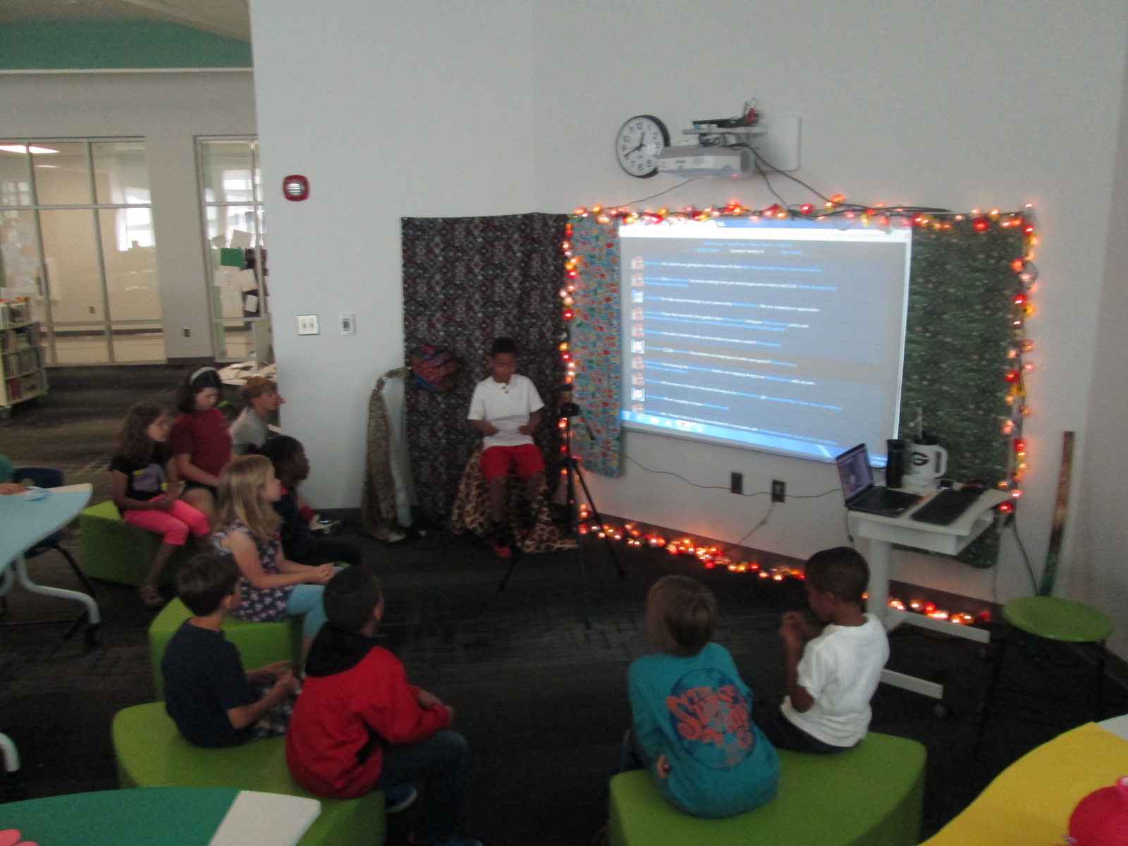 I decided to schedule 2 sessions in Adobe Connect to teach all of the classes simultaneously. K-2 had a 45-minute session and 3-5 had an 60-minute session. Ahead of time, I put copies of any handouts students would need in teacher boxes. Teachers logged in to our Adobe Connect Meeting room at the schedule time. About 5 minutes before we began, we did a sound and video check. Classes that had issues or classes with a sub combined with other classes. I planned a mix of presenting, class discussions facilitated by the teachers, polls, and videos. I also left time at the end of each session for students to ask questions.