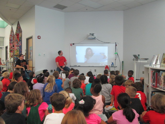 We’ve known about our visit since November, which gave us a bit of time to build some excitement. When Nathan Hale arrived at our school, two of our 5th grade ambassadors welcomed him and walked him to the library to get setup.