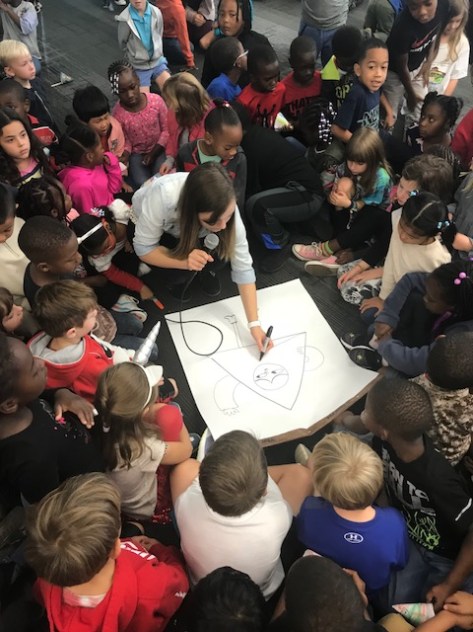 I loved that this immediately hooked kids in as they sat down. There was a buzz of excitement as kids chatted and watched Nathan draw.
