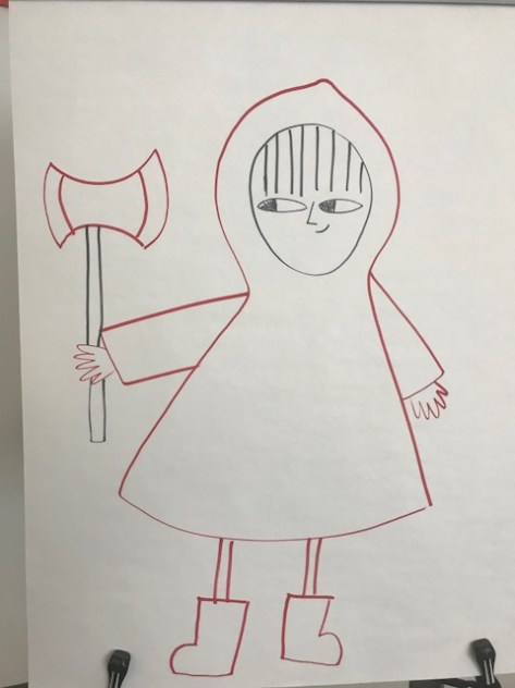 Once we got him setup, he worked on a drawing of Hangman. He continued working on this as kids arrived and then moved over to draw on his iPad.