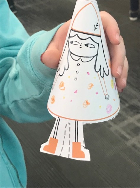 Before he left, Nathan took time to look at all of the comics that kids had made for the library windows. I loved that he took a moment to see how each one was different and what kids did with a blank piece of paper.