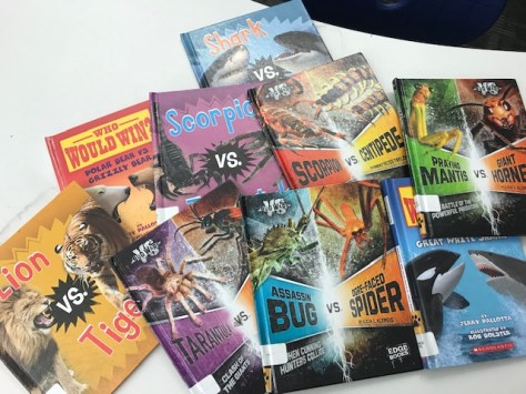 They were really searching for information and putting books side by side to make comparisons. They were having critical conversations to determine which animal would actually win in each category based on the evidence they found. They were even asking to see additional resources like websites and other books because they weren’t finding the info that they were looking for.