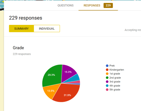 Once the book budget team had surveyed students in grades K-5, they took time to analyze their data in Google forms. Students made a list of their noticings and reached consensus on what book categories we would focus our budget on. It was hard to reach consensus with 70 kids, but each grade made a list of noticings and we looked for commonalities between those lists.