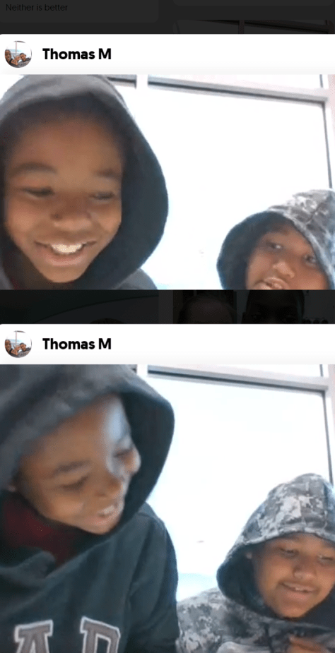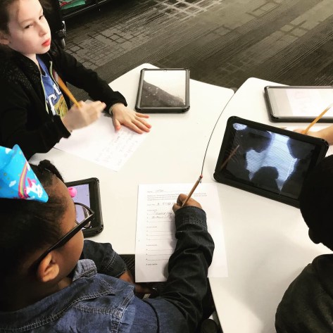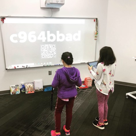 Since families aren’t coming into the building right now, I shared a Zoom link for every poetry session. I also recorded the sessions and loaded them to Youtube for families to watch later. Families who joined live via Zoom were on the screen for students to see.